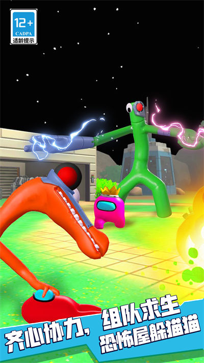 3、組隊(duì)求生,游戲中除了玩家還有很多其他的伙伴,玩家可以和他們進(jìn)行組隊(duì),共同對(duì)抗彩虹朋友。