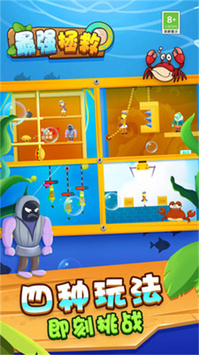 1、輕松休閑的游戲玩法,游戲中有不同的角色需要玩家去營救,玩家需要考慮不同的營救方法,玩起來十分考驗(yàn)玩家的思維能力;