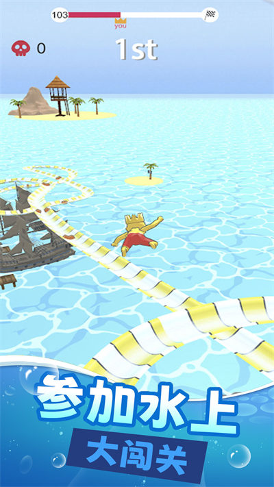 1、輕松休閑的游戲玩法,這里有一個超大的水上樂園滑梯,玩家可以操控角色在這個進(jìn)行滑梯競速;