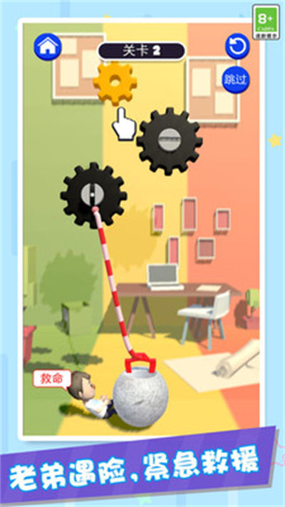 1、輕松有趣的游戲玩法,玩家需要通過滑動(dòng)滑輪來抬起巨石,解救被困在這里的人,十分考驗(yàn)玩家的技巧;