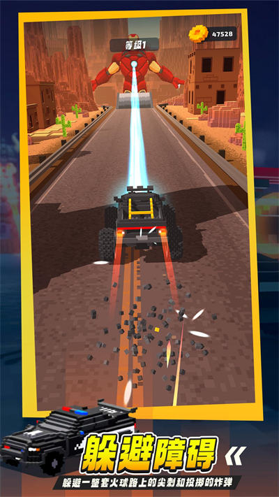 1、立體風(fēng)格的游戲畫面,游戲中的場景、賽車以及各種怪物都是立體的形式,具有很強的空間和體積感,玩起來的代入感也很好;