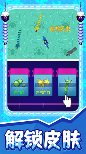 貪吃蛇之百變天蟲游戲是一款休閑競(jìng)技游戲,玩家將在游戲中控制一條小蛇,通過小蛇的吞食以及攻擊不斷的成長(zhǎng)為一條超大的大蛇,游戲中做了一些升級(jí),全新的游戲玩法,給大家?guī)砹烁嗟挠螒驑啡?,如果你感興趣的話,就快來玩玩看吧!
