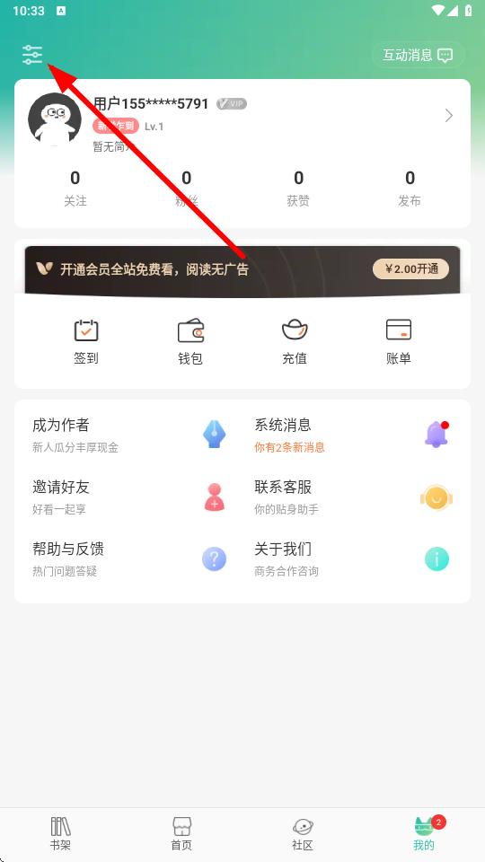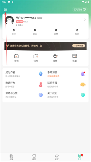 2、在個(gè)人頁(yè)面左上角找到設(shè)置圖標(biāo),并點(diǎn)擊進(jìn)入設(shè)置界面。