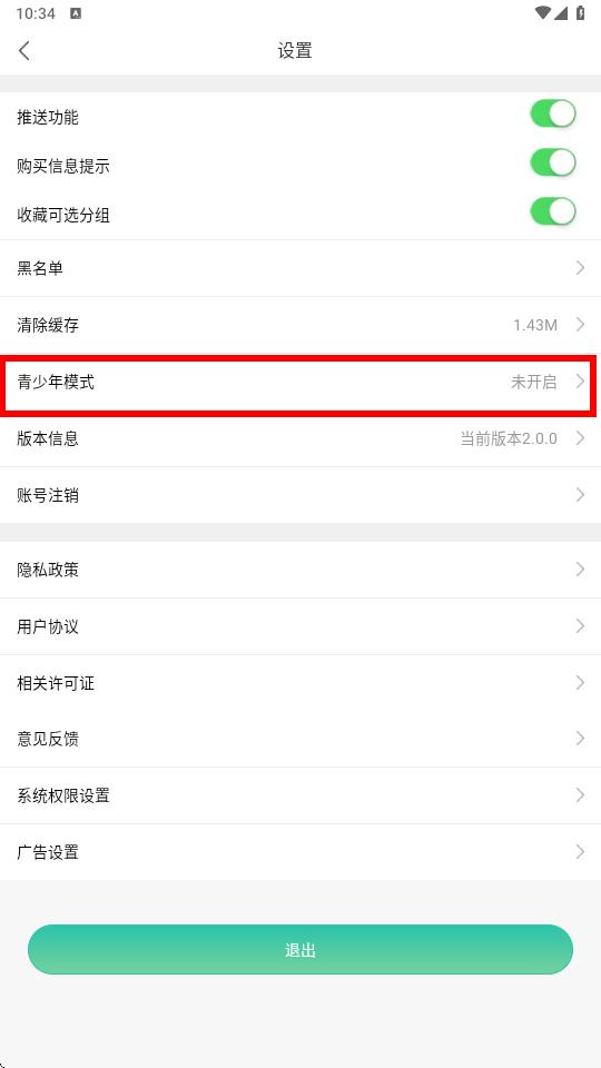 3、在設(shè)置界面中找到青少年模式選項(xiàng),點(diǎn)擊該選項(xiàng)后按照提示操作即可開啟青少年模式。