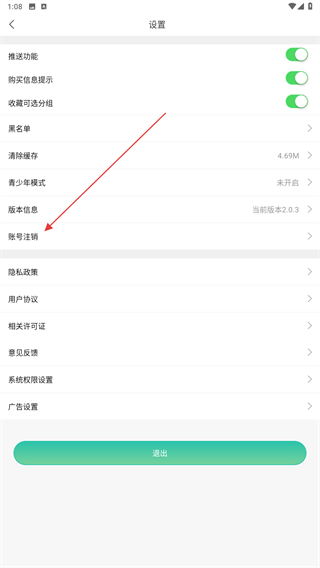 3、進(jìn)入設(shè)置的界面內(nèi),找到并點(diǎn)擊賬號(hào)注銷的按鈕。