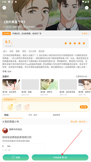 2、進(jìn)入漫畫詳情頁(yè)面內(nèi),點(diǎn)擊下方開始閱讀的按鈕。