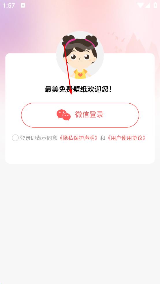 3、勾選協(xié)議選項后,點擊“微信登錄”按鈕,按照微信登錄流程,完成授權(quán)等操作,從而登錄壁紙軟件。