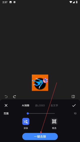 4、圖片上傳后,點擊一鍵去除按鈕,水印云會自動對圖片進行AI消除處理。