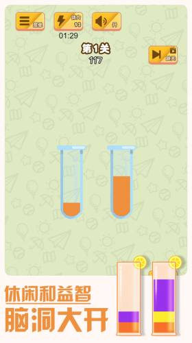 輕松解解壓手游是一款可以讓玩家獲得很好解壓體驗(yàn)的休閑游戲,游戲采用水排序的小游戲玩法,將不同試管里的不同顏色的水進(jìn)行置換,最終使得每一個(gè)試管里的液體顏色一樣,輕輕松松的游戲玩法,倒來倒去也不用太難的操作,非常休閑解壓。