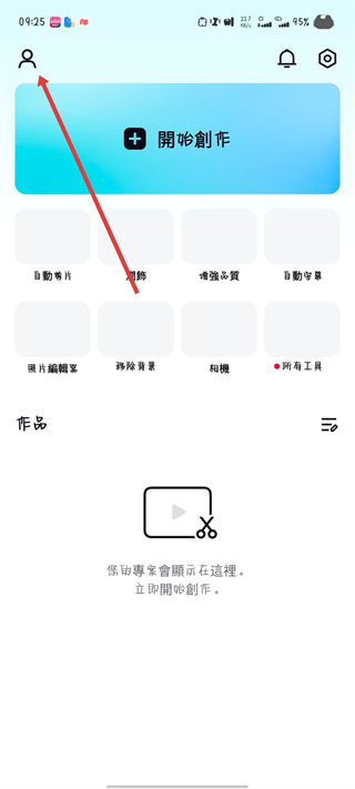 1、打開CapCutAPP,點擊左上角的個人圖標。