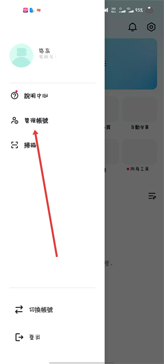 2、在彈出的側(cè)邊欄中,點擊管理賬號選項。