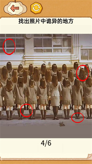 恐怖校舍解謎是一款恐怖解謎主題的游戲,玩家需要根據(jù)游戲的任務(wù)來尋找圖片之中的詭異之處,游戲中的每張圖案都存在著多處細(xì)微差異,不同級(jí)別的難度對(duì)于要求玩家觀察局部和全貌時(shí)需要加以區(qū)分,這使得游戲?qū)γ课粎⑴c者的觀察技巧考察沒有了一定的限制,十分考驗(yàn)玩家的耐心以及細(xì)心。