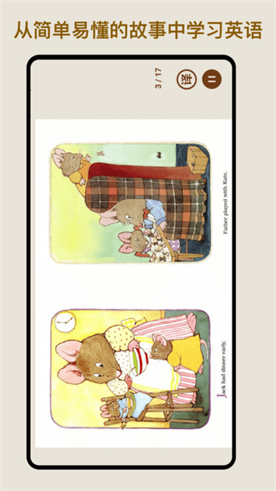 伴讀英語繪本軟件是一款可以進行朗讀和跟讀的軟件,只需要一點,就可以在軟件上面跟著音頻進行口語練習,對孩子的學習英語有著非常大的幫助,大家可以直接在軟件上面進行學習。