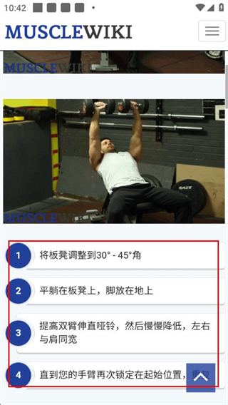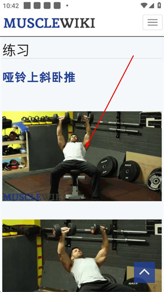 1、打開(kāi)MuscleWiki應(yīng)用,在肌肉示意圖頁(yè)面點(diǎn)擊目標(biāo)肌肉區(qū)域,進(jìn)入對(duì)應(yīng)的訓(xùn)練動(dòng)作頁(yè)面。