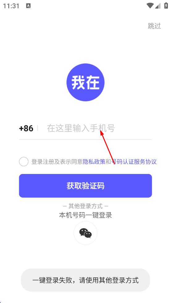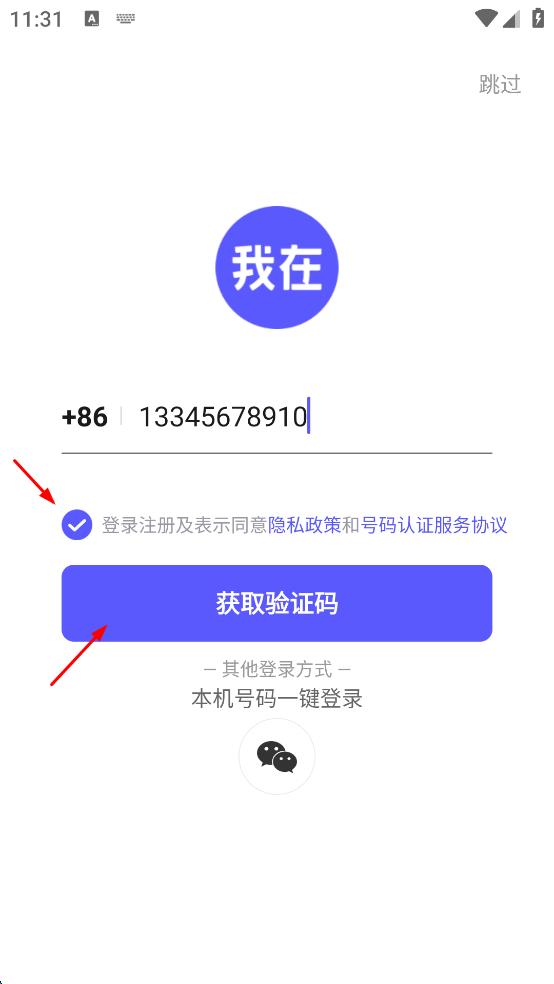 2、在登錄頁面,先在手機號輸入欄輸入手機號碼,然后勾選“登錄注冊及表示同意隱私政策和號碼認證服務協議”。