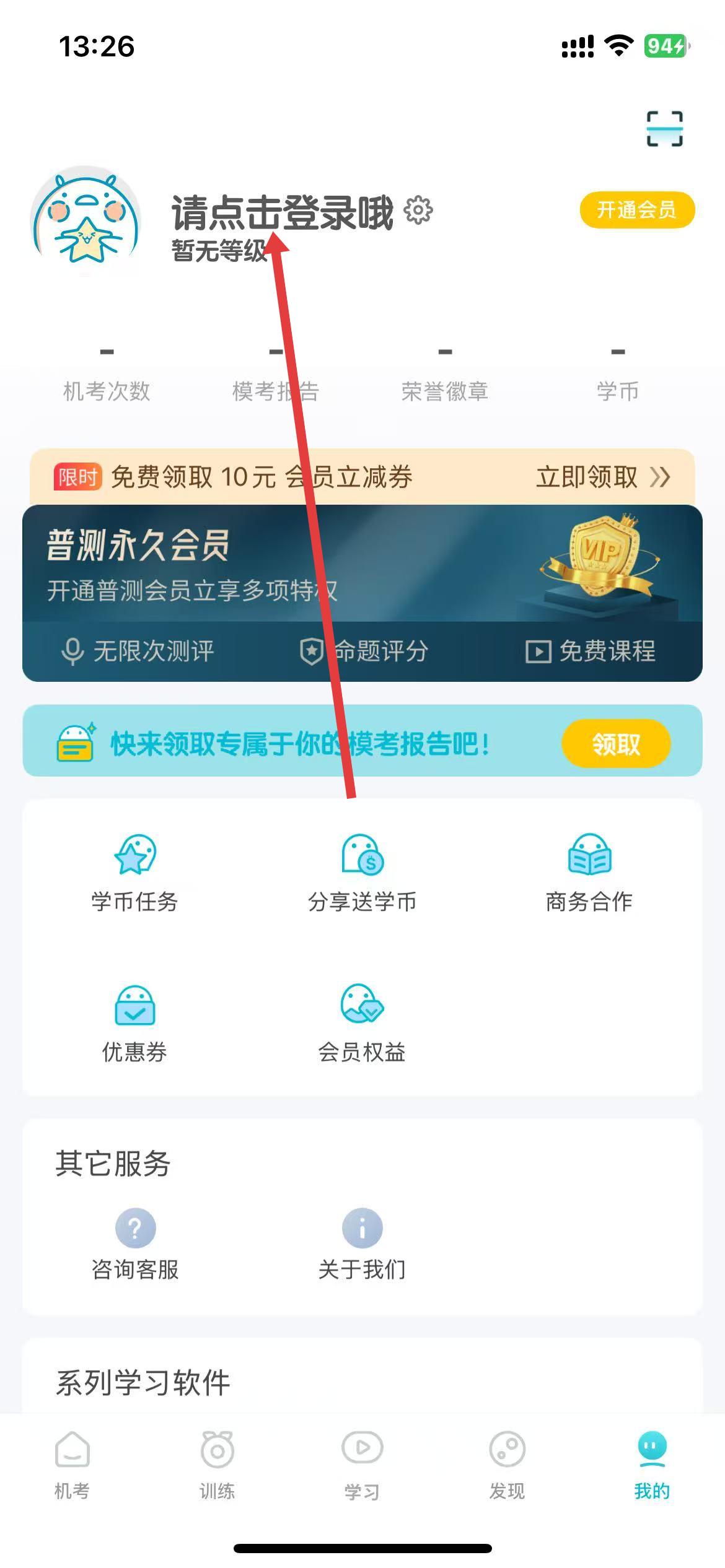 2、點(diǎn)擊請(qǐng)點(diǎn)擊登錄哦選項(xiàng),進(jìn)入登錄界面。