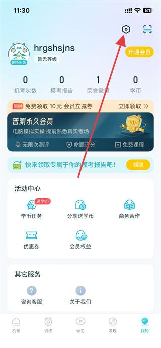 2、在我的頁(yè)面中,點(diǎn)擊右上角的設(shè)置圖標(biāo)。