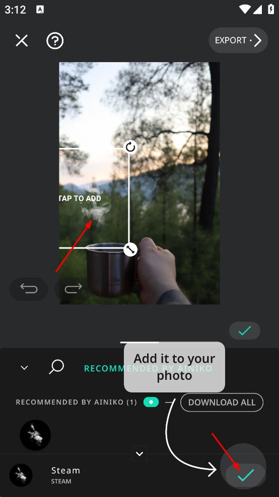 3、選好特效(如Steam),調(diào)整位置和范圍,確認后點擊右下角對勾,應(yīng)用特效完成制作。