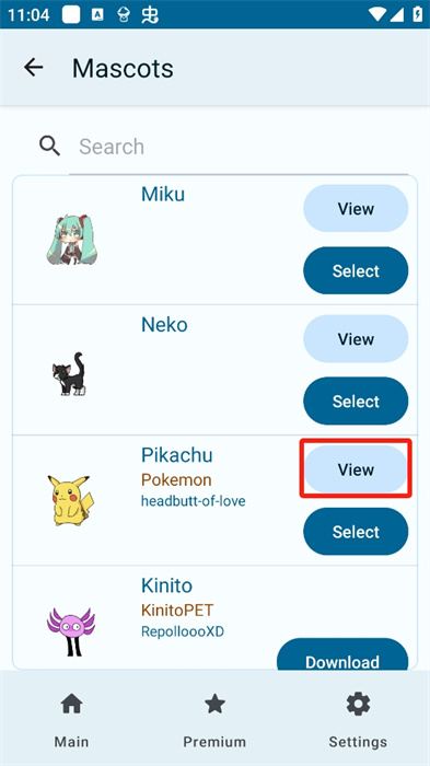 5、下載完成之后點擊【view】就會進入到桌寵動態(tài)選擇頁面,在其中你需要選擇自己喜歡的桌寵樣式;