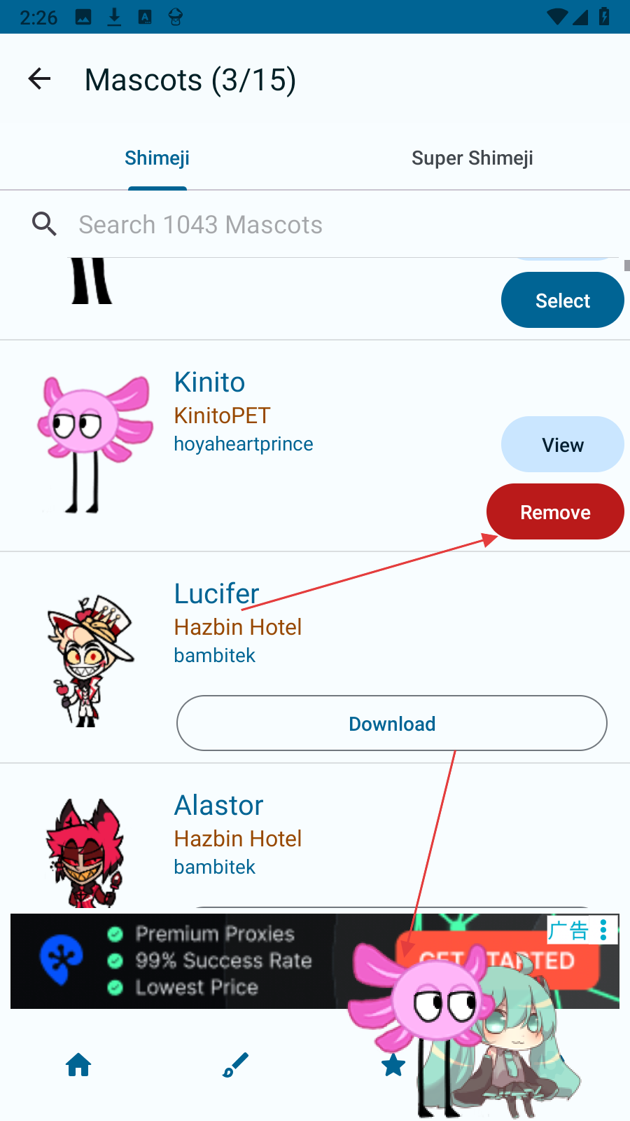 3、如果后續(xù)不想使用某個已下載的角色,在選中該角色后,點擊角色旁出現(xiàn)的Remove按鈕,即可將該角色從桌面移除。