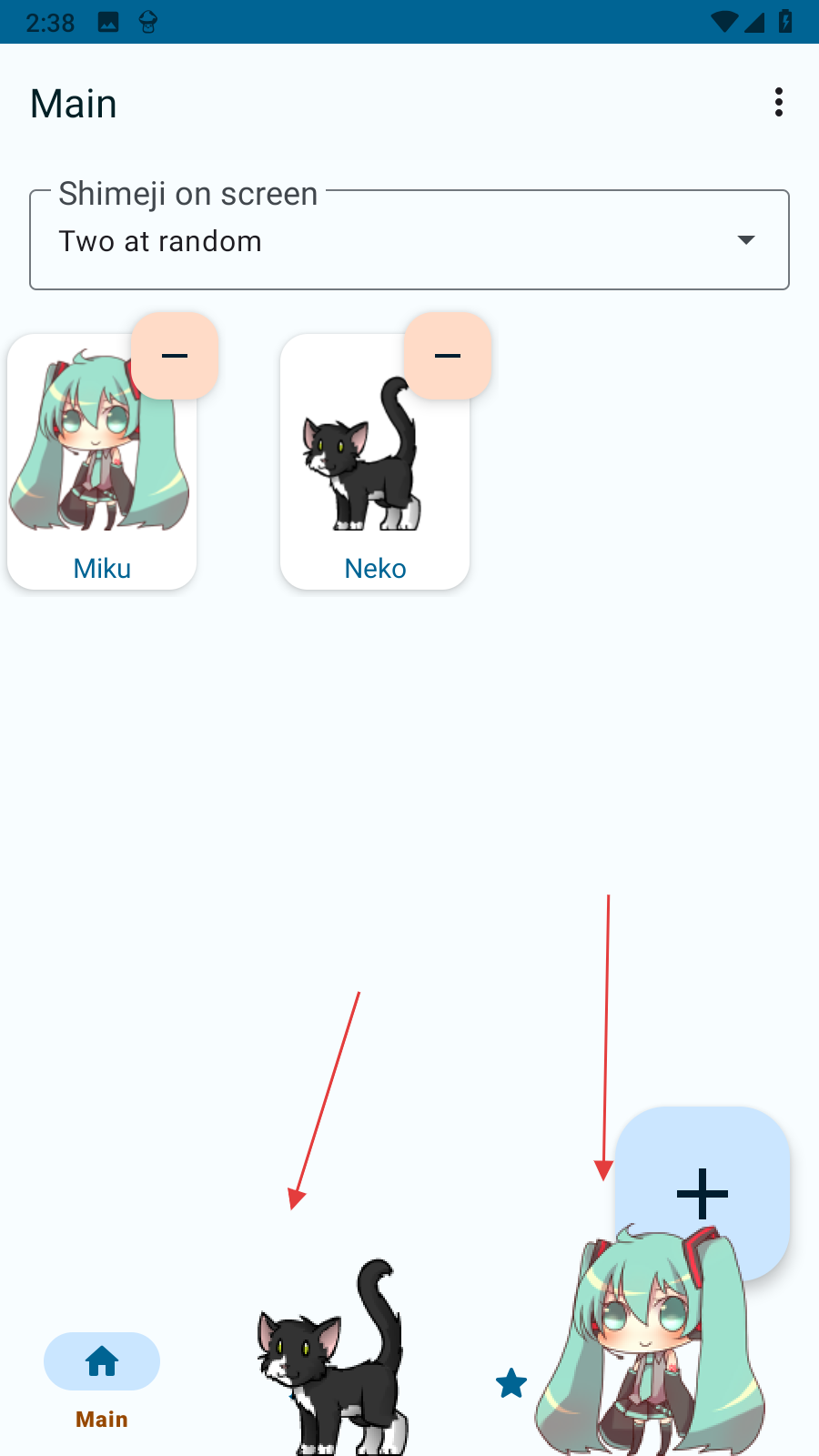 3、進(jìn)入應(yīng)用主界面后,初始桌寵就會(huì)出現(xiàn)在桌面上,可以點(diǎn)擊加減更改刪除桌寵。