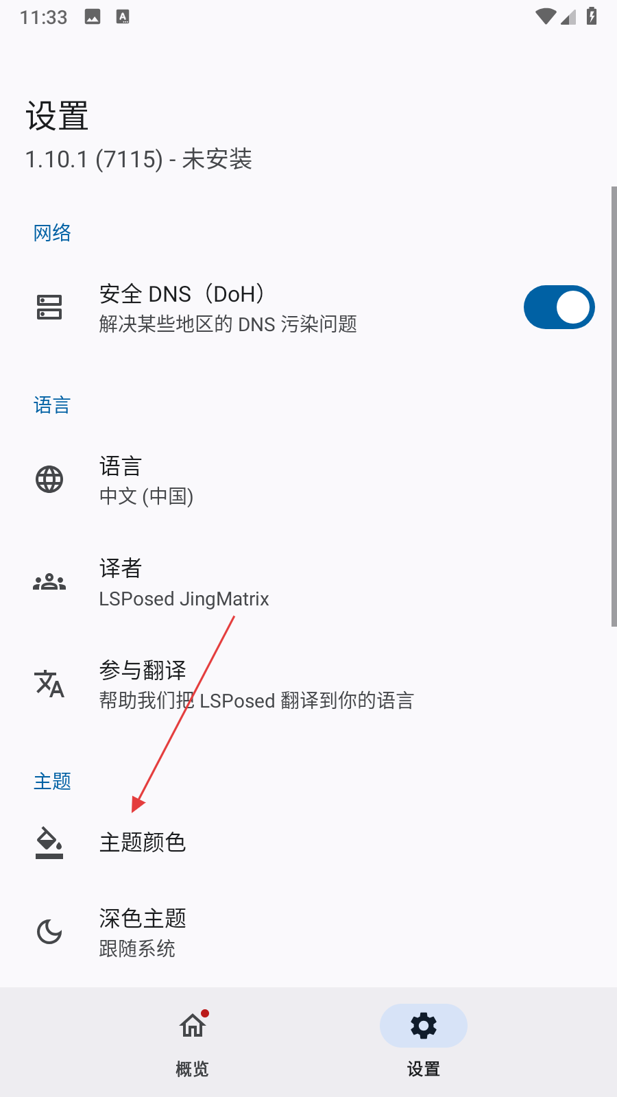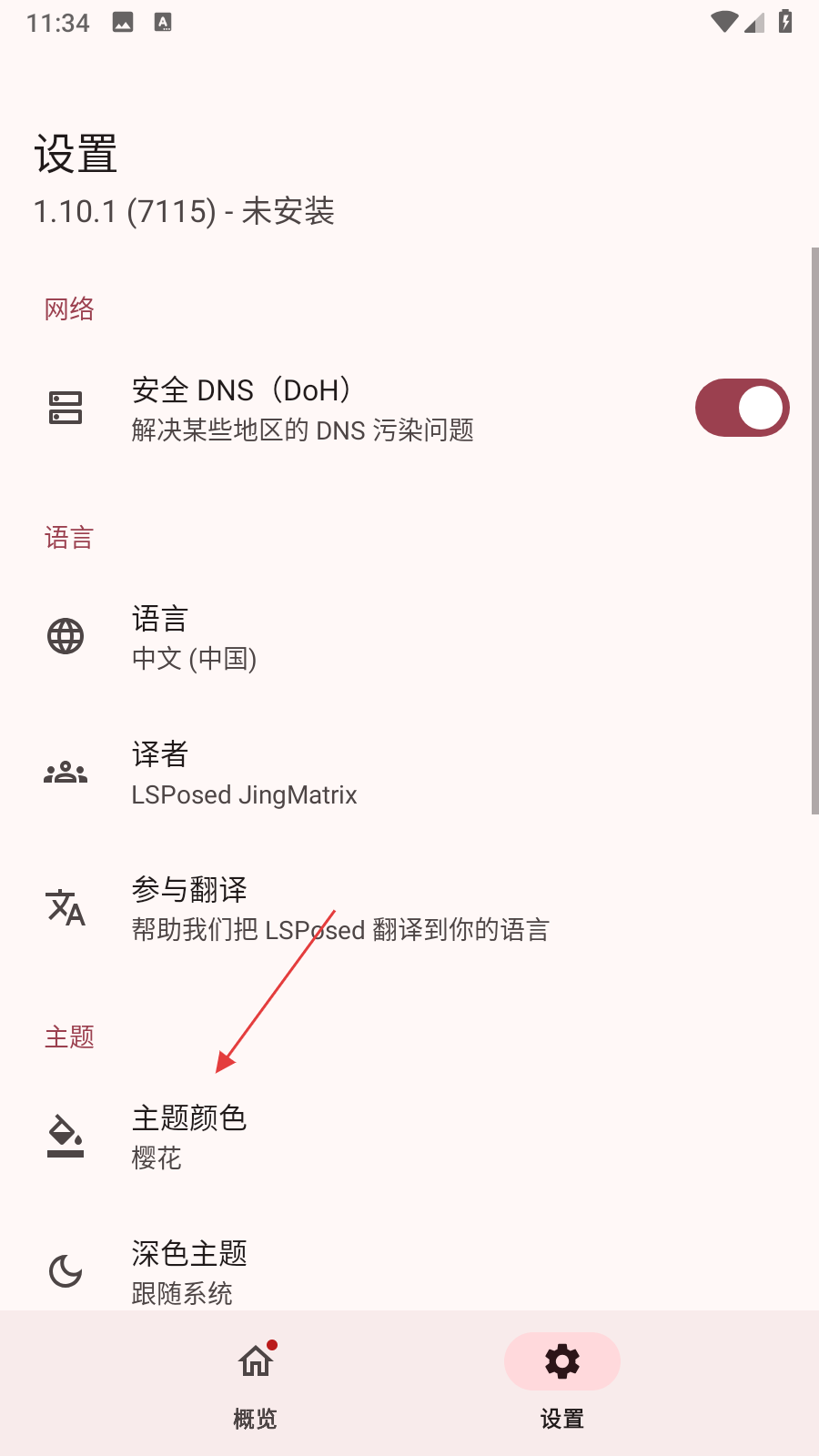 4、選擇完成后,LSPosed界面的主題顏色自動更新,完成設(shè)置。