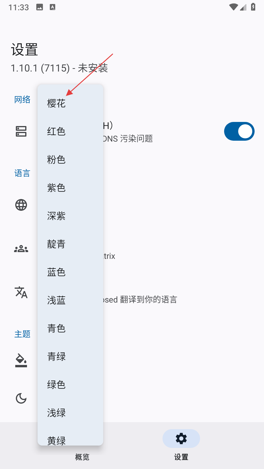 2、在設(shè)置頁面中,找到并點擊主題顏色選項,彈出顏色選擇列表。