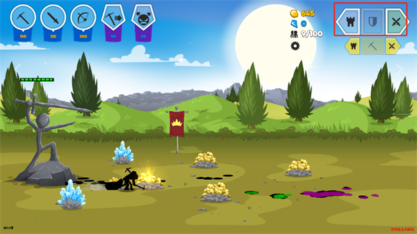 4、屏幕右上方的三個按鈕分別代表不同的含義,從左到右依次是原地駐軍、防御以及攻擊。