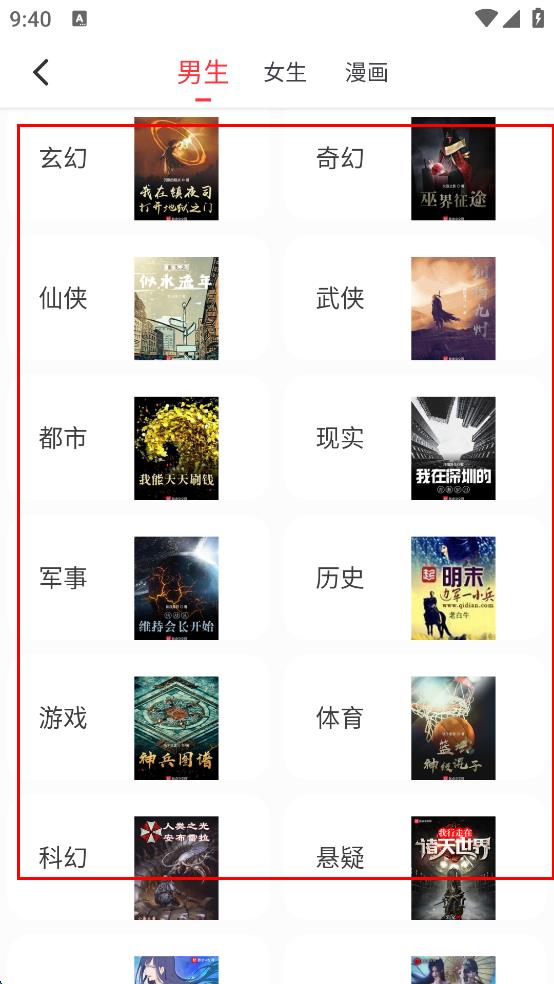 3、在小說分類頁面,選擇“男生”分類下的“玄幻”類別,進(jìn)入玄幻小說列表頁面。
