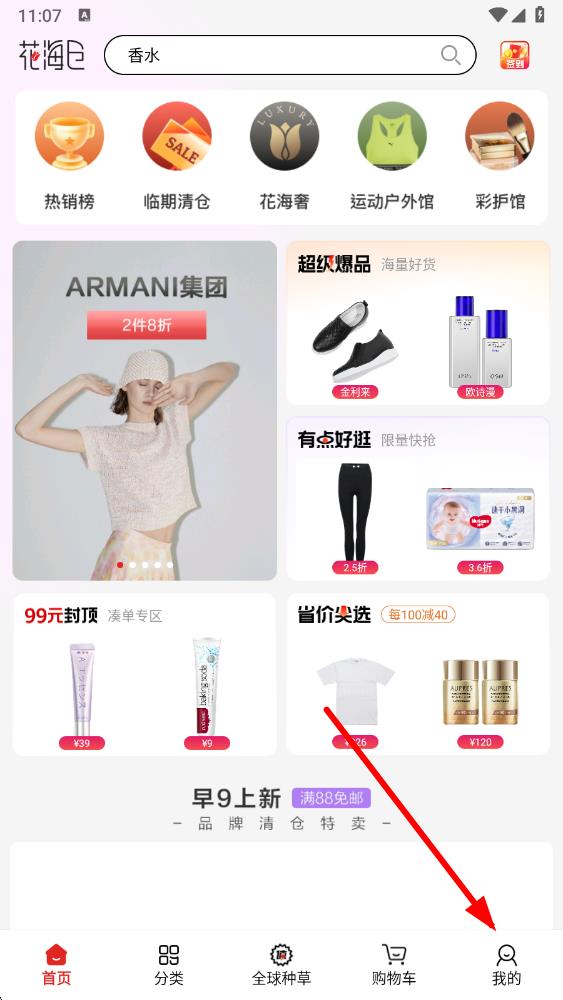 1、打開花海倉app,點(diǎn)擊底部導(dǎo)航欄最右側(cè)的我的圖標(biāo),進(jìn)入個人相關(guān)界面。