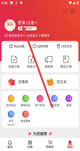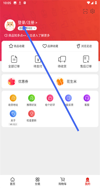 2、個人中心頁面點(diǎn)擊“登錄/注冊”,進(jìn)入登錄界面。