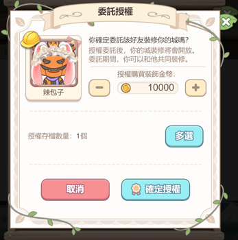 喜歡漂亮城市卻又不懂裝飾的城主大大,可以在好友界面邀請好友幫忙布置城市。委托人需要設(shè)置好授權(quán)購買裝飾的金幣,讓被委托的好友能用你的金幣購買更多好看的裝飾妝扮城市哦。