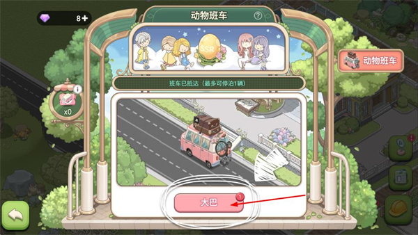 4、進入動物班車界面,點擊大巴按鈕獲取對應(yīng)的班車資源。