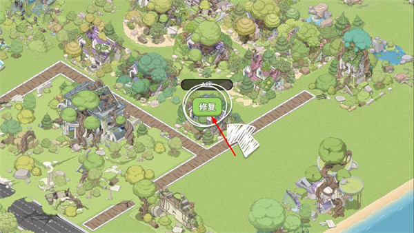 2、在主場景中點擊修復(fù)按鈕,對破損的建筑進行修復(fù)操作。