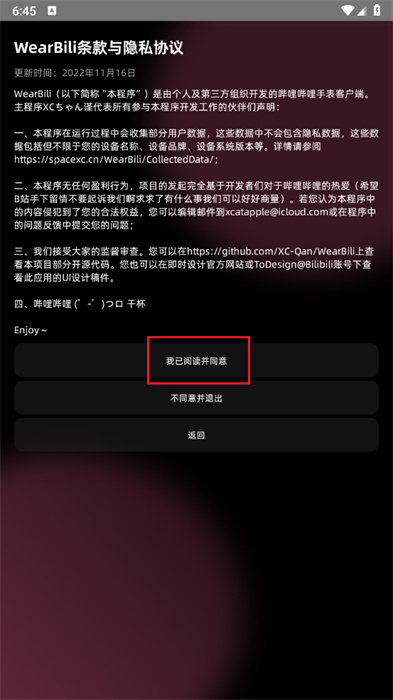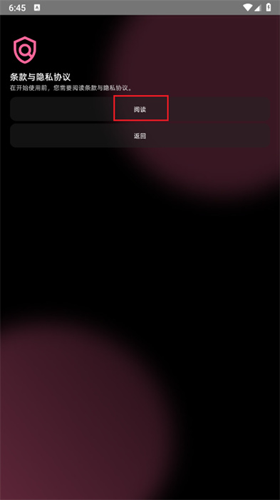 2、此時(shí)可以點(diǎn)擊【閱讀】按鈕來(lái)進(jìn)行隱私協(xié)議的閱讀;