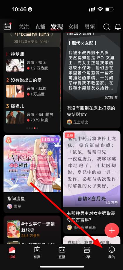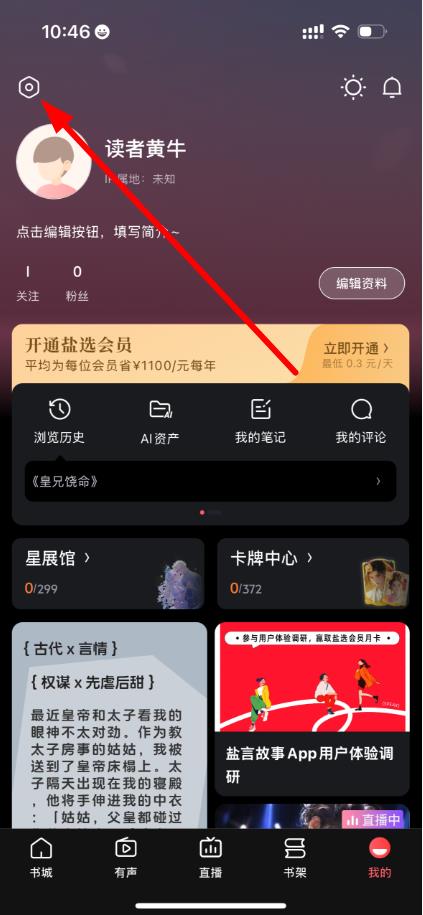 1、打開鹽言故事App,點擊底部導航欄中的我的進入個人頁面。