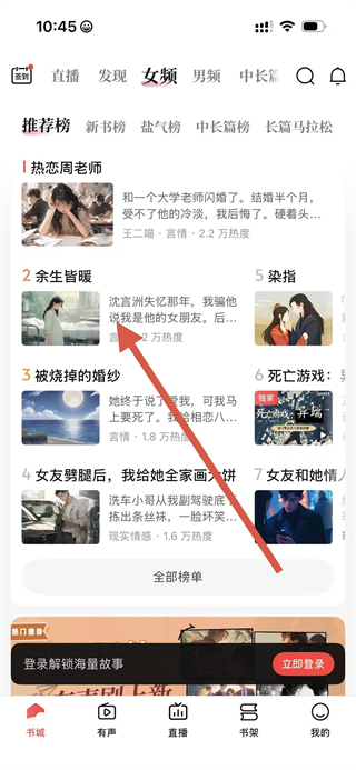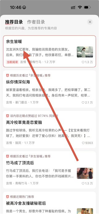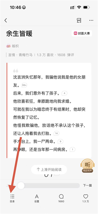 1、在鹽言故事書城頁面,點擊要查看目錄的書籍,進入書籍閱讀頁面。