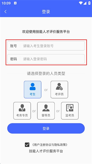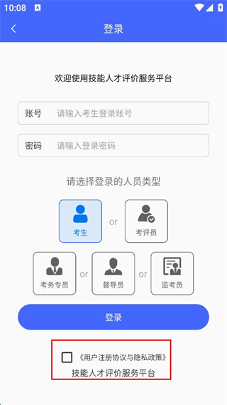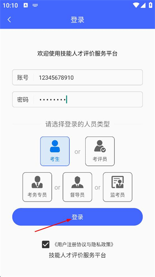 4、確認(rèn)登錄的人員類(lèi)型為考生后,點(diǎn)擊登錄按鈕完成登錄。