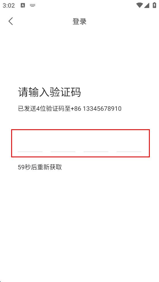 3、在請(qǐng)輸入驗(yàn)證碼界面輸入收到的4位驗(yàn)證碼,完成登錄。