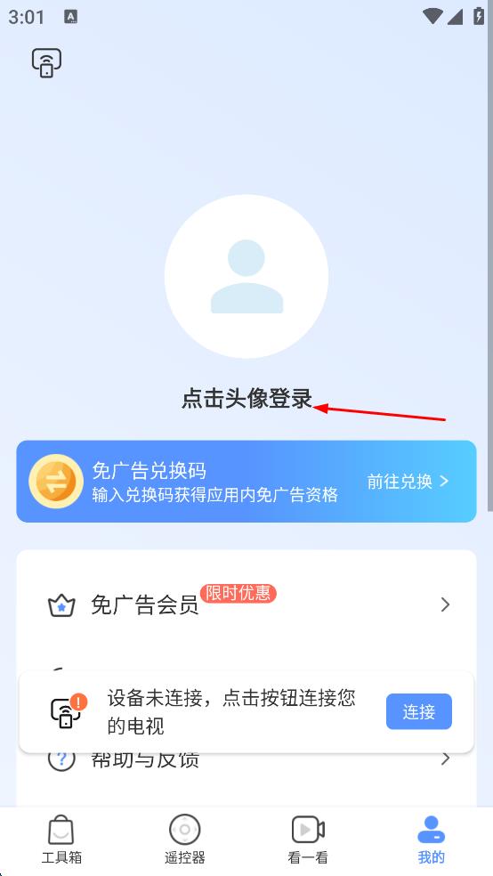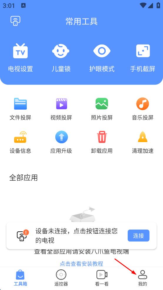 1、打開投屏軟件,點(diǎn)擊右下角我的,進(jìn)入個(gè)人頁面。