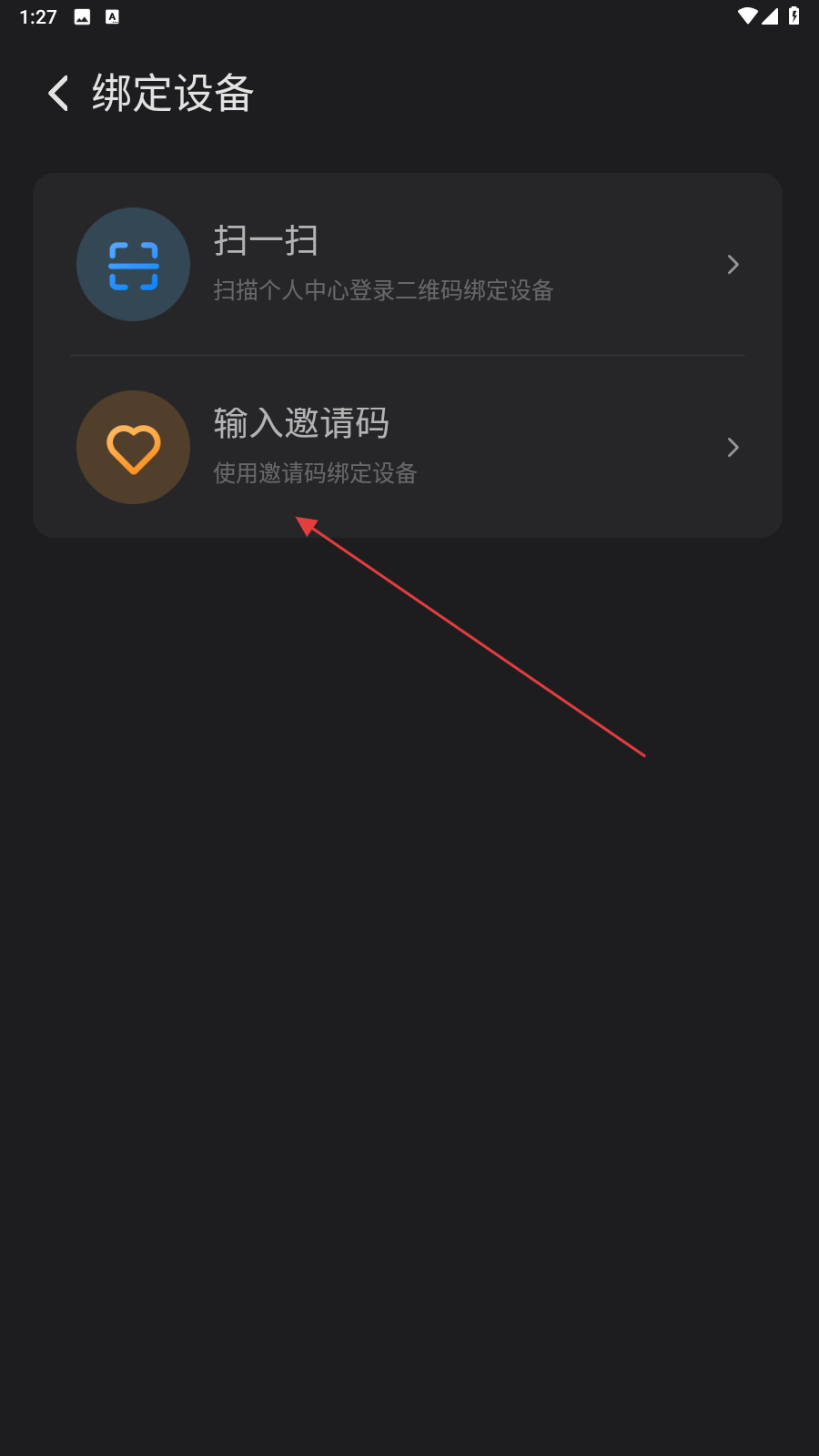 3、在綁定設(shè)備的頁面內(nèi),點(diǎn)擊輸入邀請(qǐng)碼的按鈕。