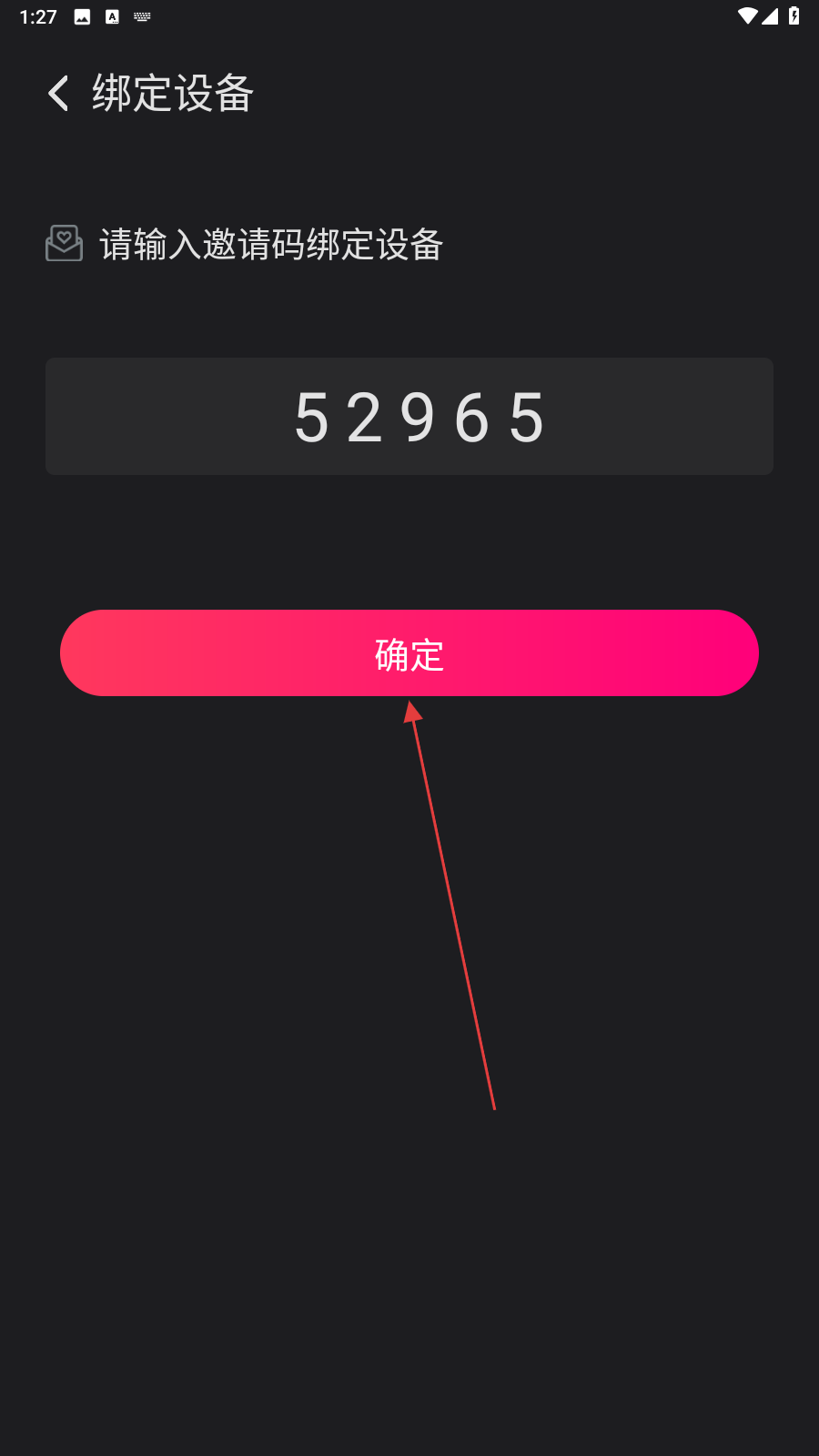 4、在該頁面內(nèi),輸入邀請(qǐng)碼后,再點(diǎn)擊確定的按鈕即可綁定成功。