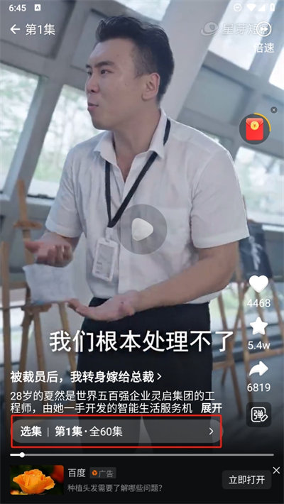 3、進(jìn)入后可以看到該短劇的點(diǎn)贊人數(shù)和收藏?cái)?shù)量等等,如果要跳轉(zhuǎn)集數(shù)可以在這里找尋;