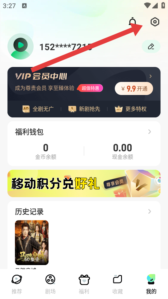 1、在星芽短劇我的頁面,點(diǎn)擊右上角的設(shè)置圖標(biāo),進(jìn)入設(shè)置的界面。