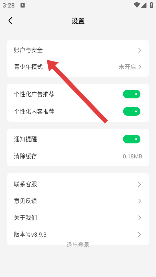 2、在設(shè)置頁面,點(diǎn)擊賬戶與安全的選項(xiàng),進(jìn)入賬號(hào)與安全設(shè)置界面。