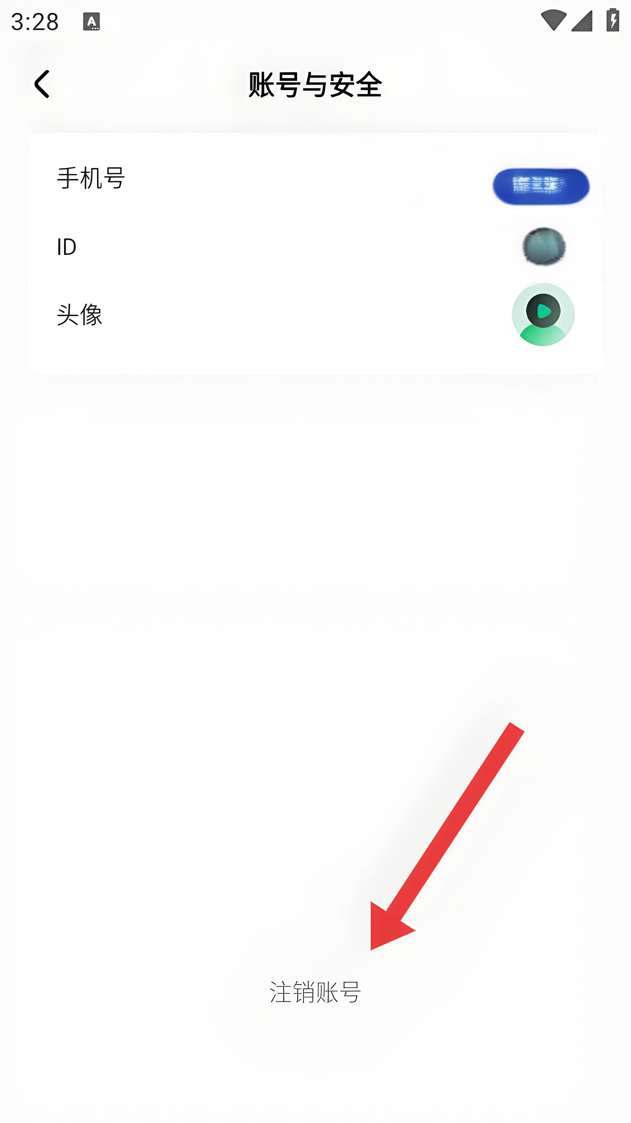 3、在賬戶與安全頁面,點(diǎn)擊底部的注銷賬號(hào)按鈕,進(jìn)入注銷賬號(hào)說明頁面。