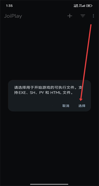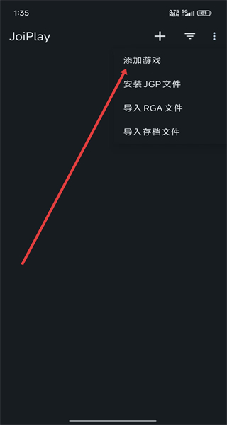 2.添加游戲:打開joiplay模擬器,點(diǎn)擊右上角“+”選擇添加游戲,找到文件夾【精靈寶可夢(mèng)無限融合5.0.36 】,選擇【Game.exe 】。