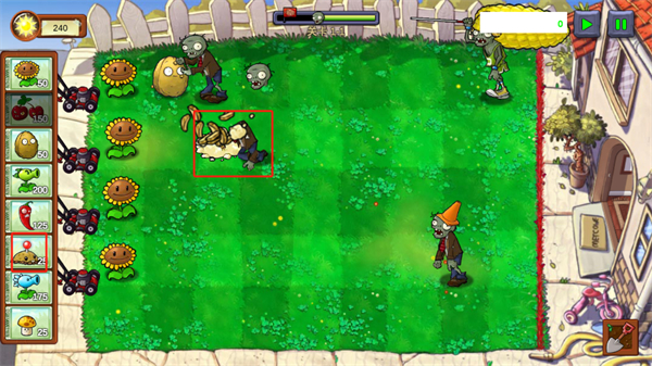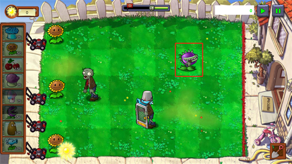 2、紅框框內(nèi)的植物可以實現(xiàn)一命換一命的效果,玩家可以用它來換僵尸的一命;