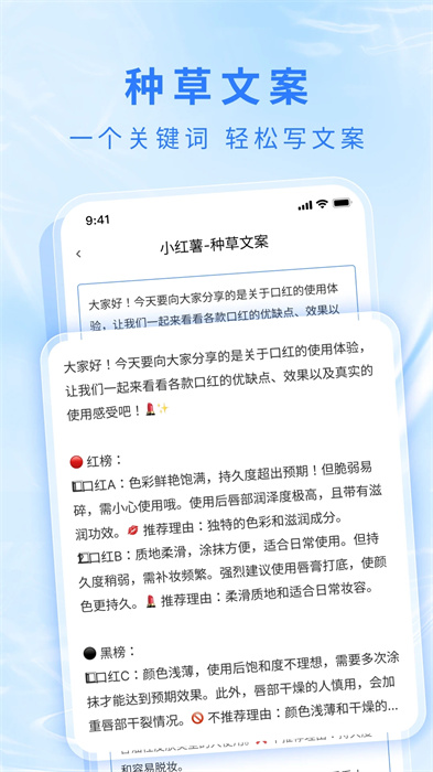 d、無廣告使用,讓用戶能夠專注于文案創(chuàng)作,沒有繁瑣的彈窗和廣告干擾,保證用戶體驗的流暢。
