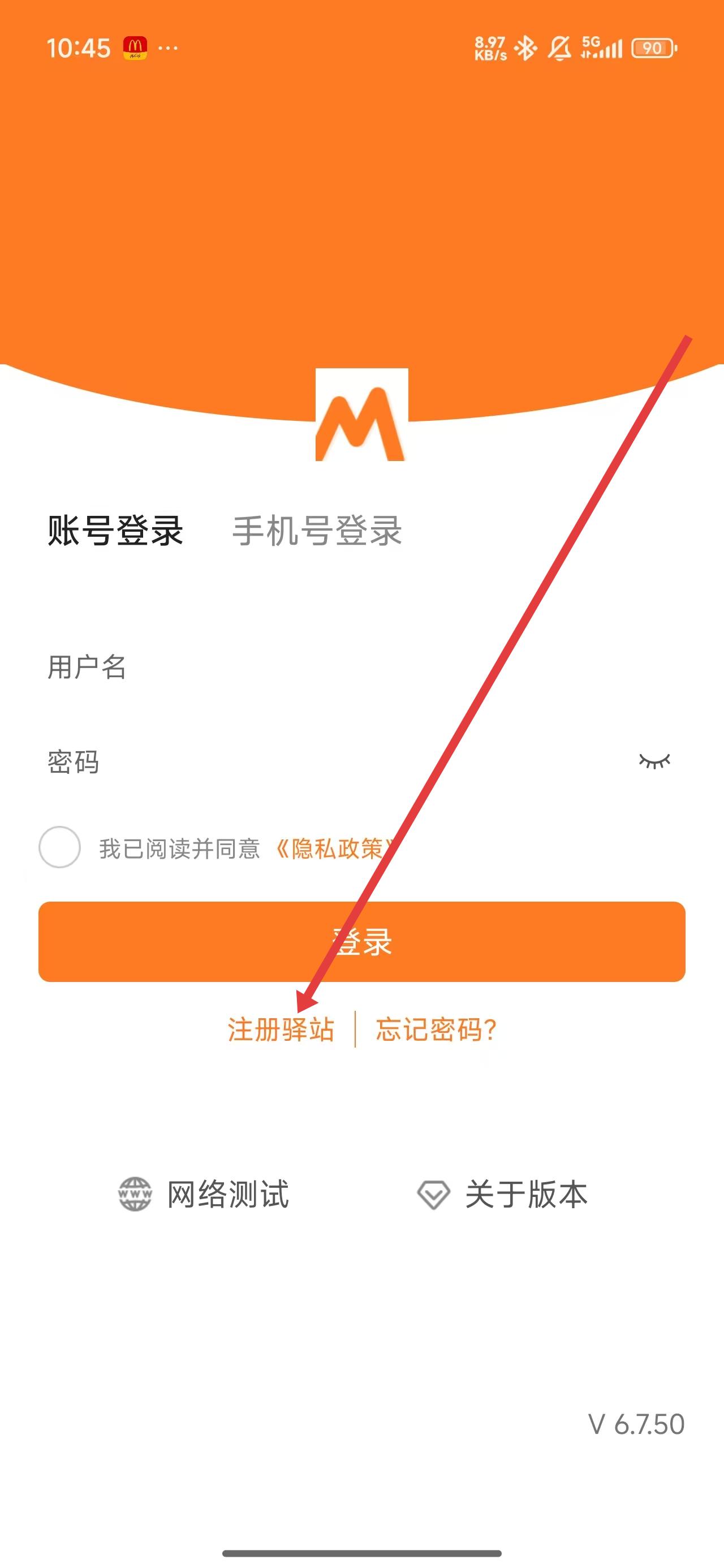 2、在進(jìn)入到登錄頁面中后,若沒有賬號可以點擊注冊驛站按鈕,進(jìn)行注冊操作。